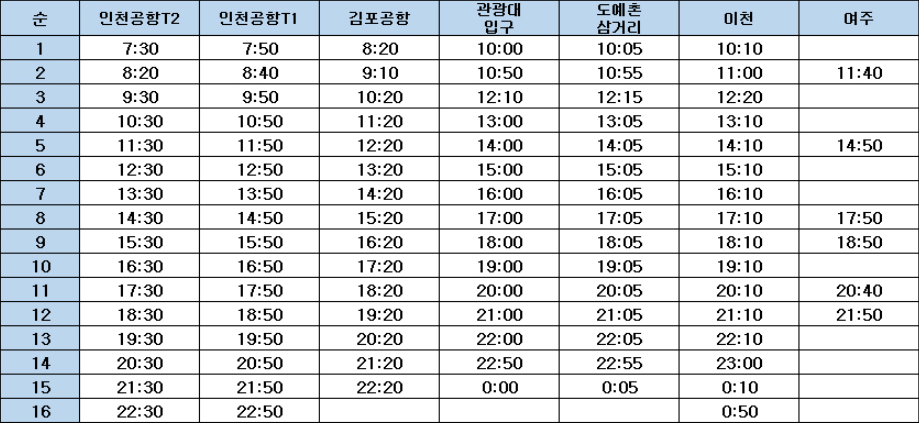 여주 막차 : 18시 25분 출발 ~ 21시 50분 도착(인천공항1터미널)