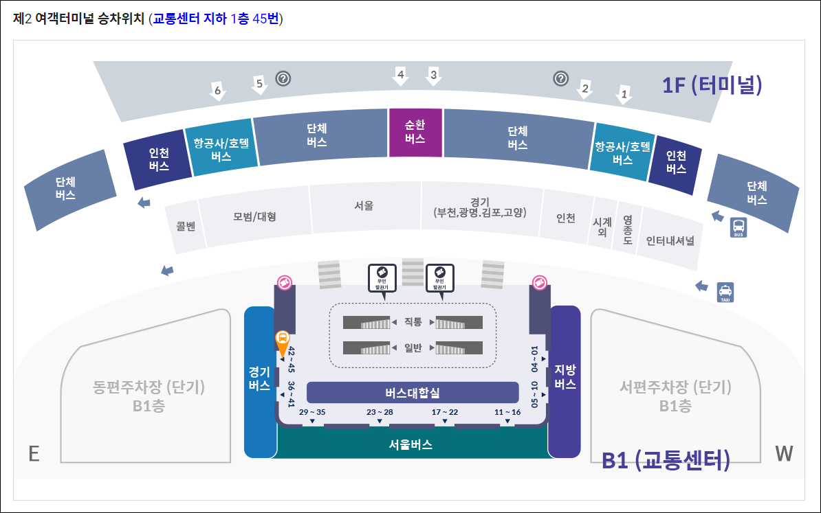 3. 인천공항2터미널 : 교통센터 지하 1층 45번 출구에서 탑승.