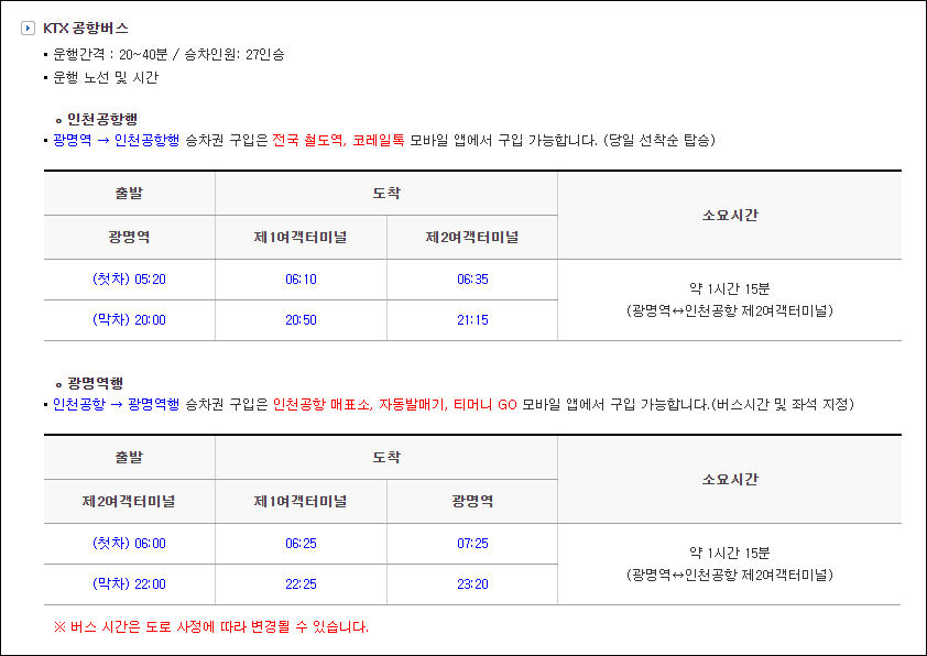 1. 광명역 : 4번 출구에서 6770번 공항버스 탑승.