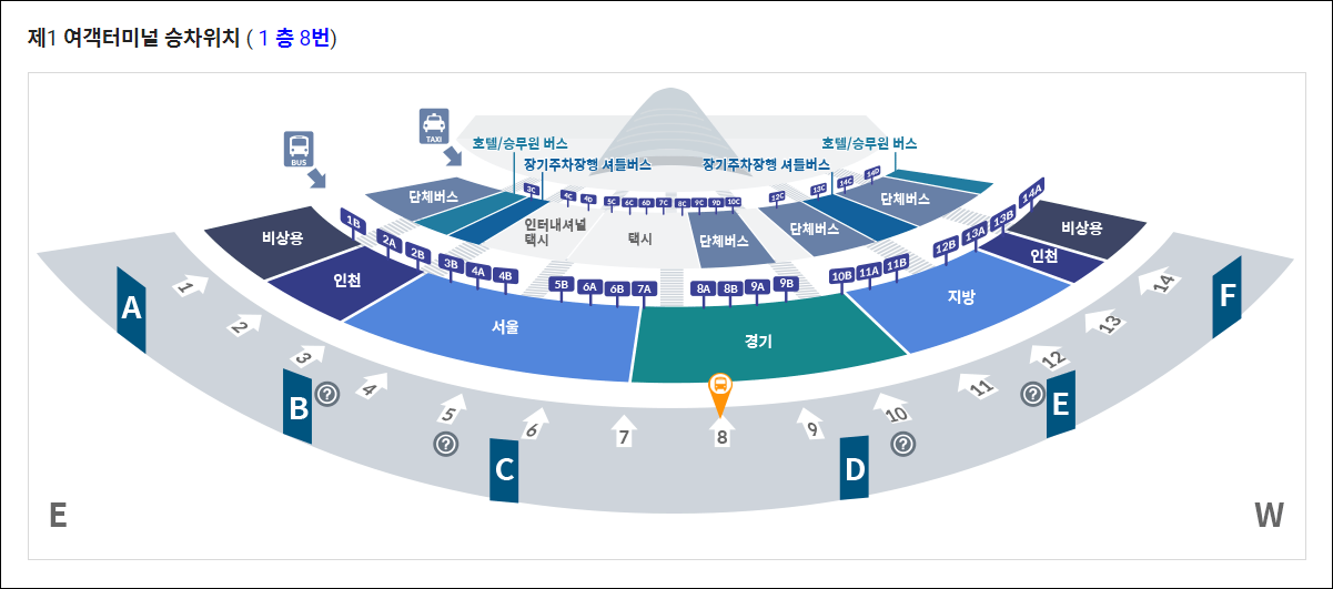 2. 인천공항1터미널 : 1층 8번 출구에서 탑승.