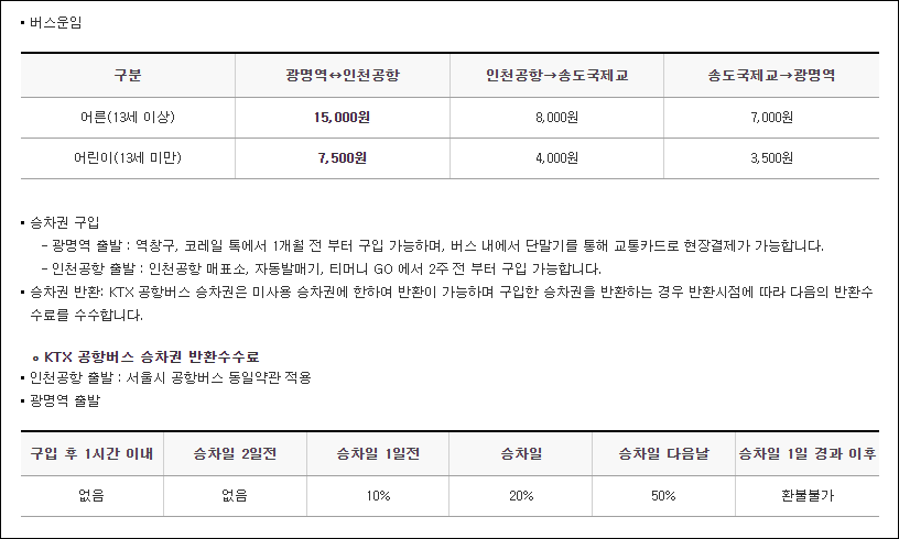 2. 광명역으로 가는 승차권 구입은 인천공항 매표소, 자동발매기, 티머니GO 모바일 앱에서 구입 가능하고 지정좌석제.