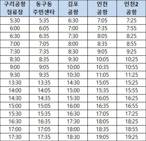 마석 - 천마산 - 평내 - 금곡 - 도농 - 구리공항 - 동구동 - 김포 - 인천공항