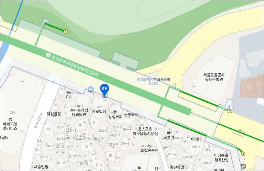 동대문디자인플라자 타는 곳 : 10번 출구에서 한양공고방면 100미터지점 나이키매장 앞