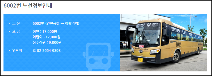 6002번 청량리역 인천공항 리무진 버스 시간표, 요금, 타는 곳