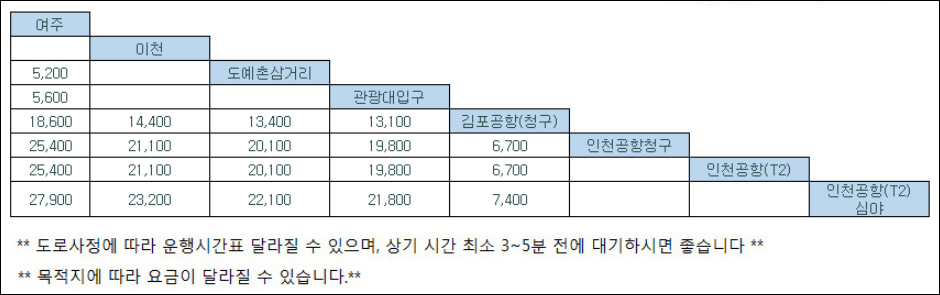 인천공항 여주 리무진 배차 간격 : 하루 6편 운행