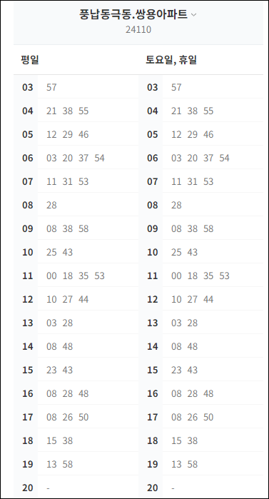 풍납동쌍용아파트 첫차 시간표 :새벽 3시 57분에 출발