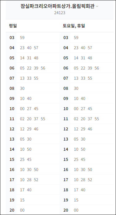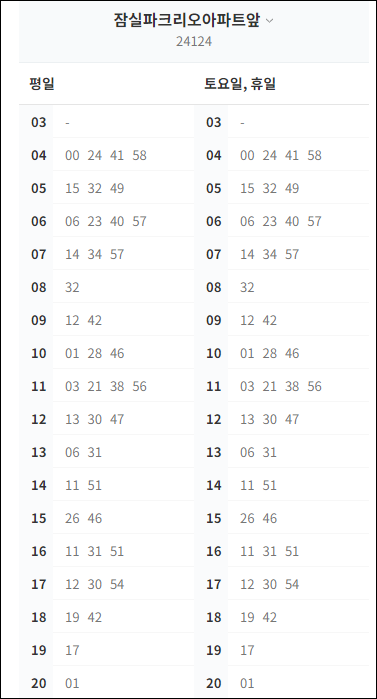 * 잠실파크리오아파트 막차 : 저녁 20시 1분 출발
