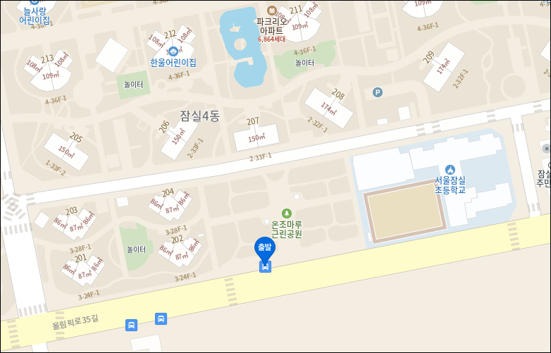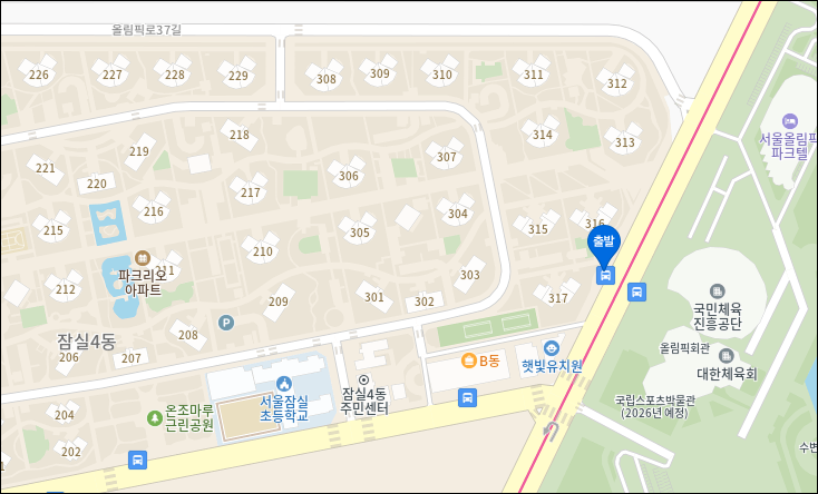 * 잠실파크리오아파트 앞 : 온조마루근린공원 입구 주차장에서 탑승