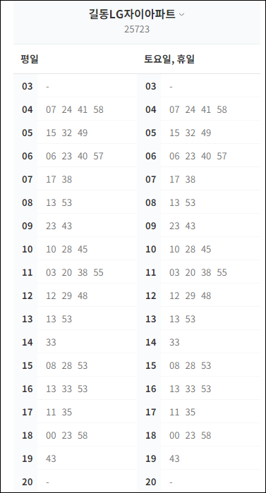 * 길동 LG자이아파트 첫차 : 새벽 4시 7분 출발