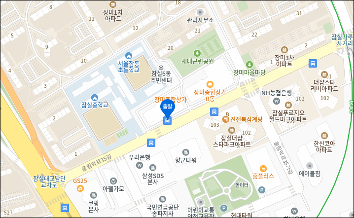 * 잠실중학교/장미아파트 : 장미종합상가 앞 정류장에서 탑승