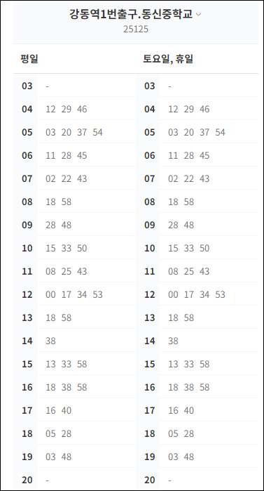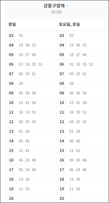 * 강동구청역 첫차 : 새벽 3시 55분 출발