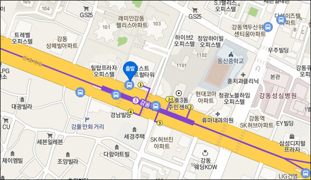 * 상일동 : 상일초등학교 옆 중앙버스전용차로