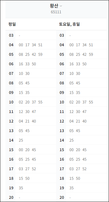 * 하남(황산) 첫차 : 저녁 19시35분 출발