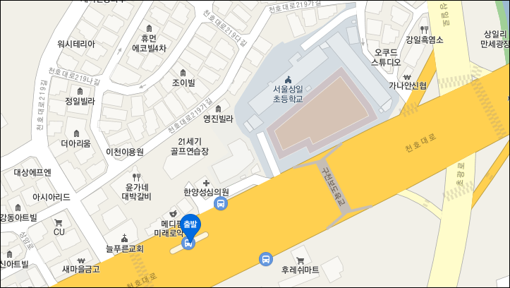 2. 상일초교 : 메디팜 미래로 약국 앞 중앙버스전용차로