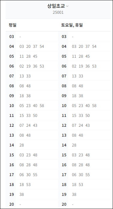 상일초등학교에서 첫차 시간표 : 새벽 4시 3분에 출발