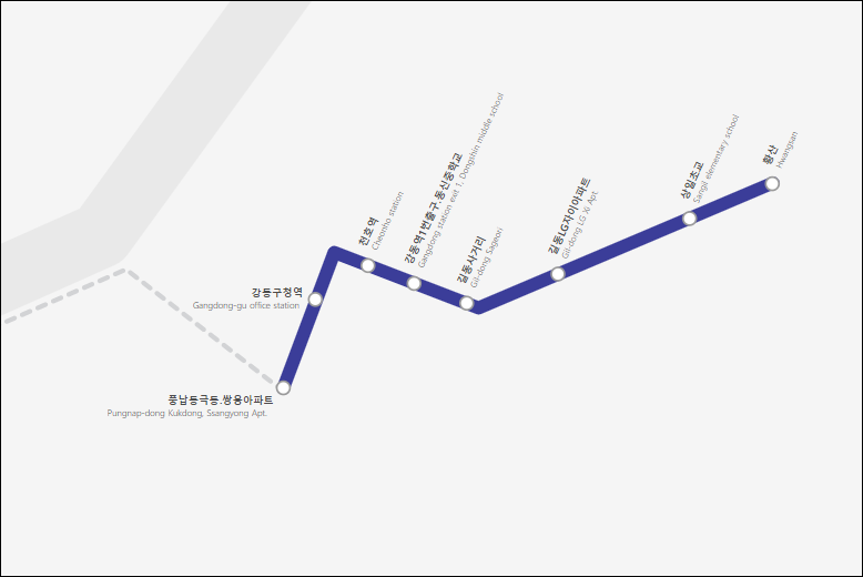 상일동 - 길동자이아파트 - 길동사거리 - 천호역 - 강동구청역 - 풍납동 - 인천공항
