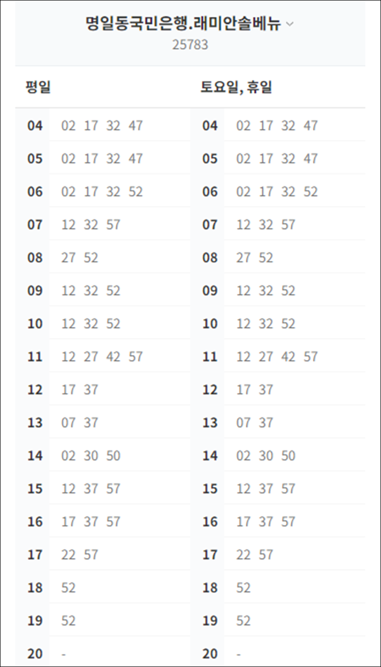 명일동국민은행에서 막차 시간표 : 19시 52분에 출발
