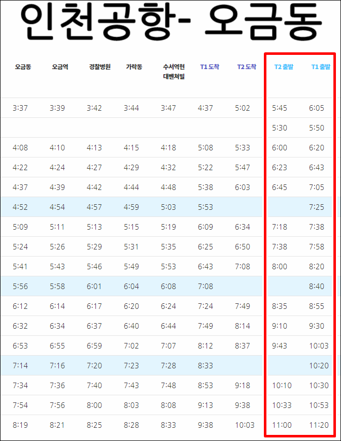 오늘 알려드릴 곳은 인천국제공항1, 2터미널에서 오그동까지 리무진 버스 시간표인데요, 먼저 글로 간단하게 정리를 해서 올리겠습니다. 더 자세한 정보는 아래 표와 이미지를 참고해주세요.