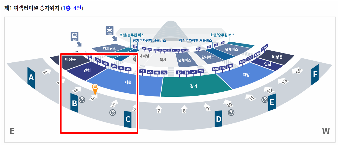 인천공항 제1 여객터미널 승차위치는 1층 4번 출구에서 6006번 리무진 버스 탑승.