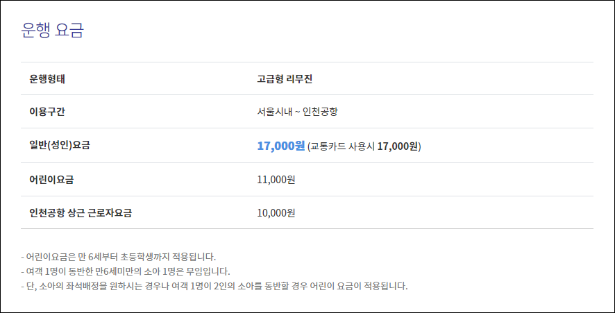 6006번 리무진 버스 요금은 성인은 카드일 경우 17,000원, 현금은 17,000원이며 어린이는 11,000원입니다.
