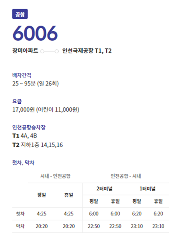 인천공항 6006번 공항버스 시간표, 요금, 노선도