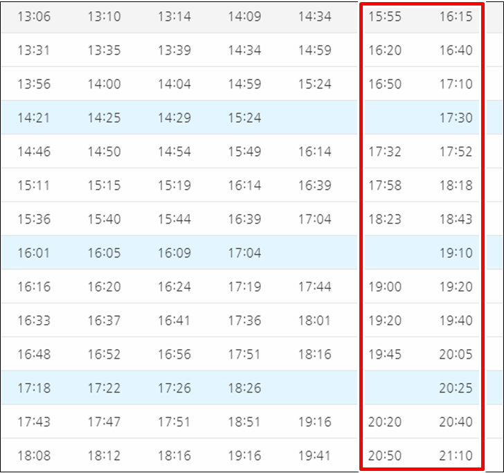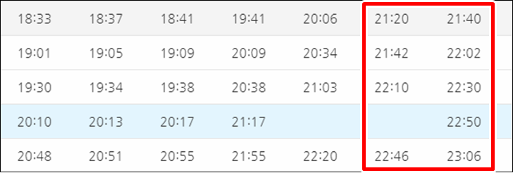 1터미널 막차 시간표 : 밤 22시 46분 출밤