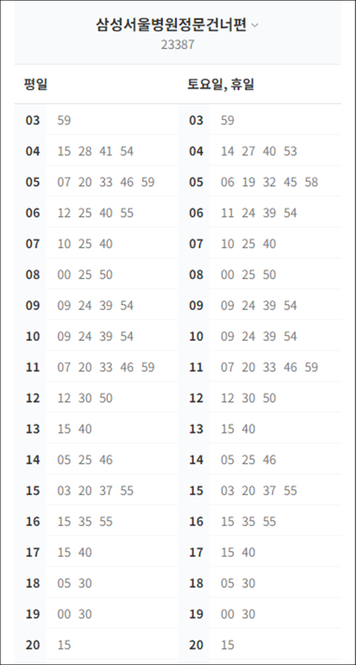 삼성서울병원 막차 시간표 : 20시 15분 출발
