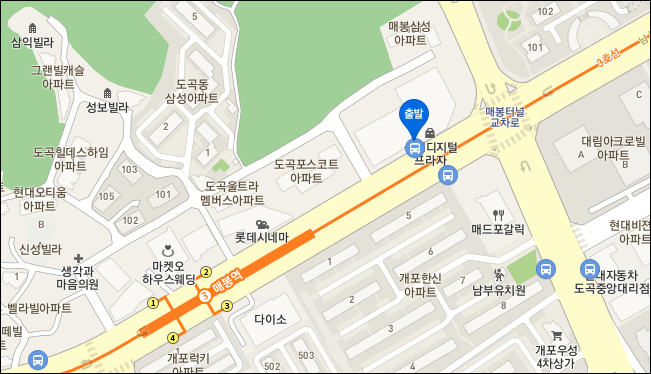 매봉역 인천공항 리무진 6009번 버스 타는 곳