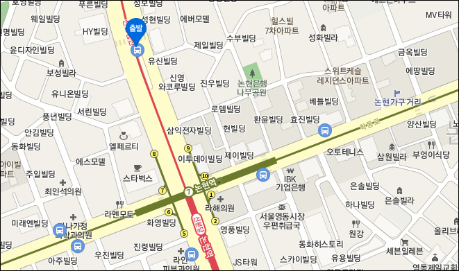 공항버스 타는 곳은 논현역 6,7번 출구에서 신사역 방향으로 160m 거리의 중앙버스차로정류장입니다.
