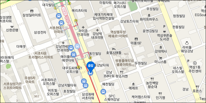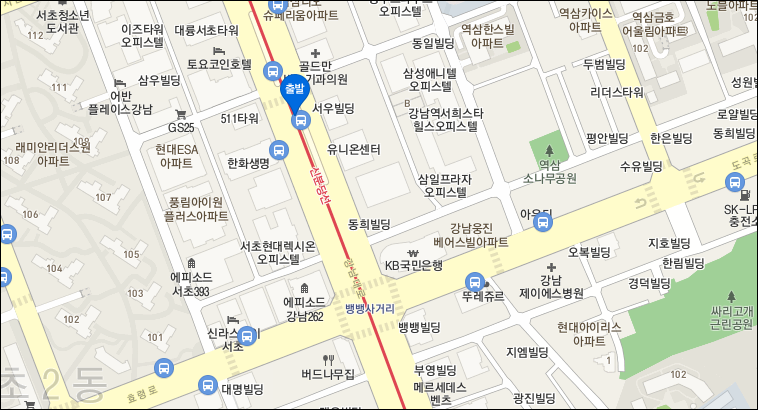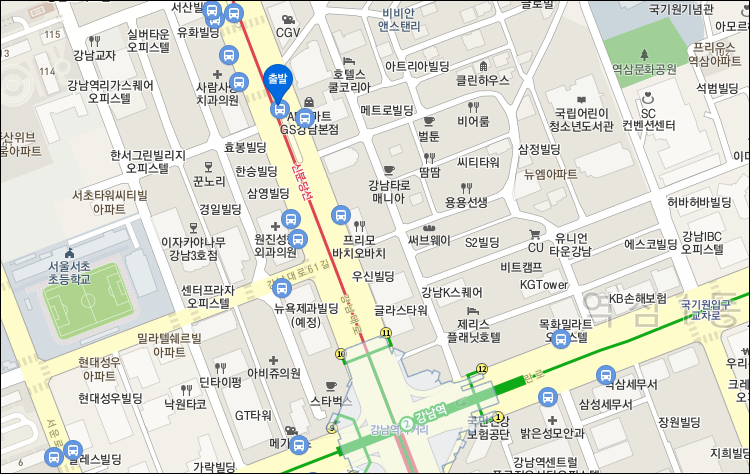 신분당선 강남역 - 4, 5번출구 대룡강남타워(투썸플레이스) 앞 중앙버스전용차로정류장.