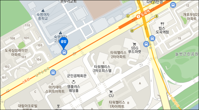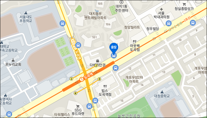 공무원연금매점교차로 - 개포상록스타힐스아파트 901동 앞 정류장.