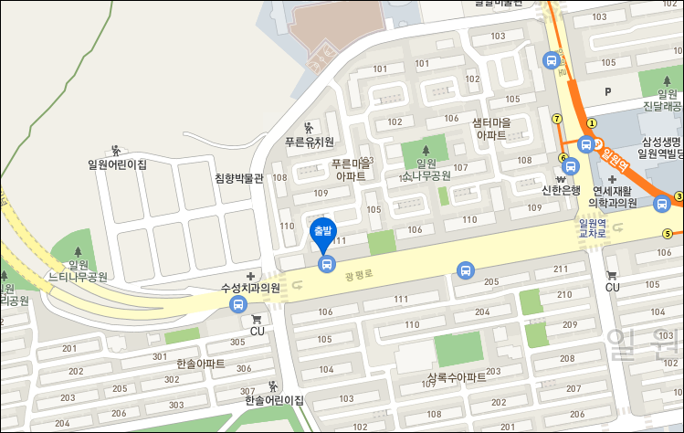 일원동 - 푸른마을아파트 111동 앞 정류장에서 공항버스 탑승.