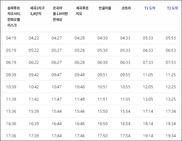 문정2동 송파푸르지오시티오피스텔 건너편 정류장에서 공항버스 탑승.