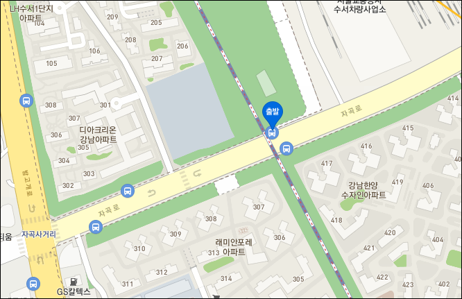 은곡마을 : 강남LH1단지아파트 109동 혹은 강남신동아파밀리에 206동 앞 정류장