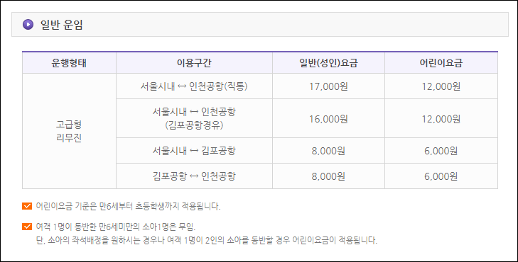아동은 만6세부터 초등학생까지 요금 적용되며 만 6세 미만 소아는 3인 가족 탑승 시 소아는 1인 무료 탑승 가능합니다. 잔여석이 있을 경우 2좌석 가능하며 지정좌석을 원할 경우 아동요금이 적용됩니다.