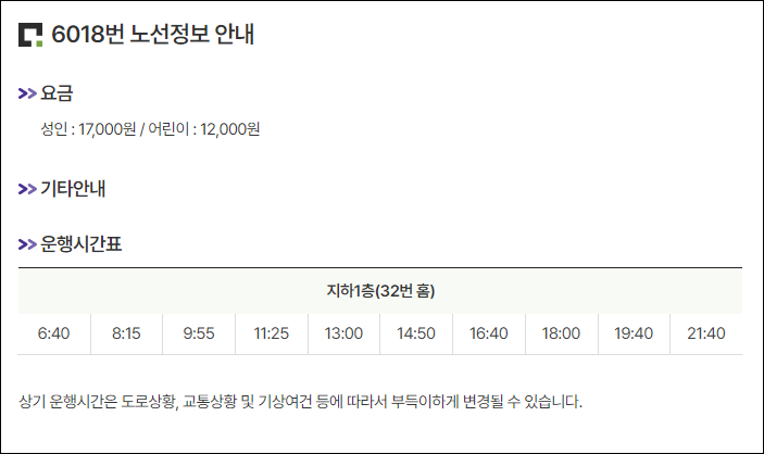 6018번 공항버스 배차간격 : 하루 10번 배차