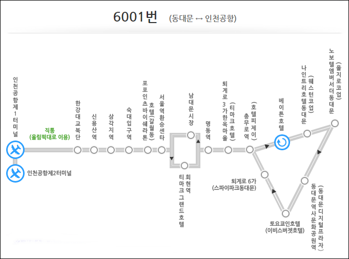 6001번 리무진은 온라인에서는 예약, 예매는 불가능합니다. 정류장에 도착한 순서대로 리무진에 탑승해야만 합니다. 공항버스 더 자세한 정보는 아래 링크를 클릭해서 확인하세요