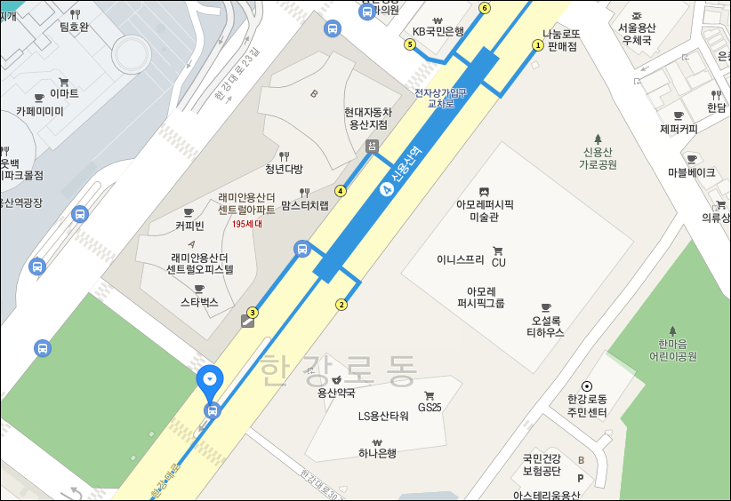 신용산역 3번 출구에서 중앙버스전용차로정류장