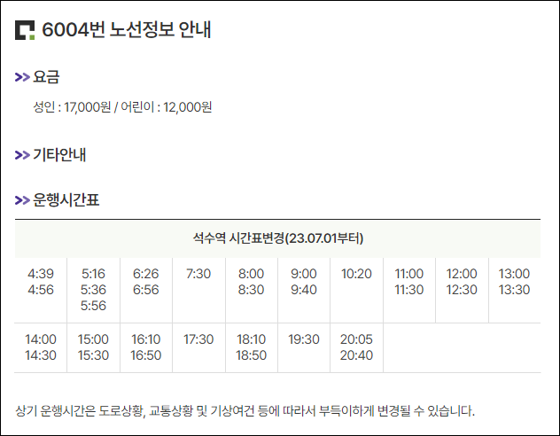 석수역 공항버스 시간표, 요금, 타는곳(6004번)
