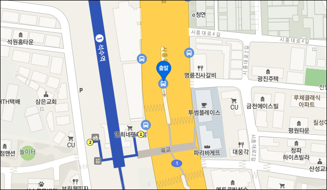 1. 금천구청 : 시흥고개, 대현오피스텔 건너편 중앙버스전용차로정류장