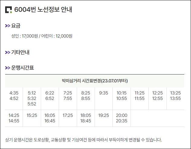 6004번 공항버스 배차간격 : 30분 ~ 40분