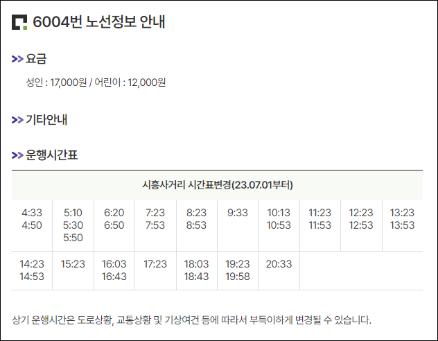 시흥동 6004번 공항버스 첫차 시간표