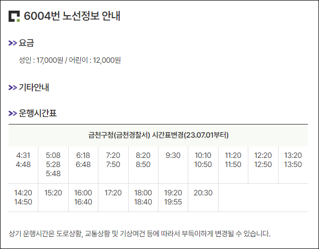 오늘 알려드릴 지역은 금천구 시흥동에서 인천국제공항1, 2터미널까지 향하는 6004번 공항버스 시간표인데요, 먼저 글로 간단하게 알려드리고, 더 자세한 시간표는 아래 표와 이미지를 참고하시면 되겠네요.
