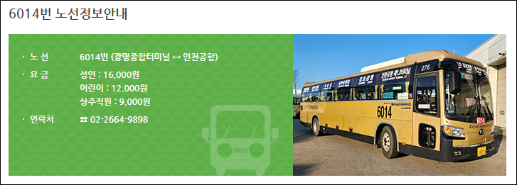 광명사거리역에서 인천공항가는 버스 시간표, 요금