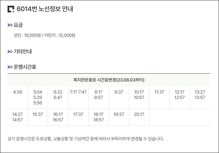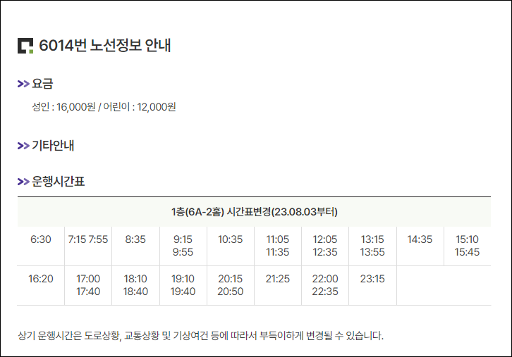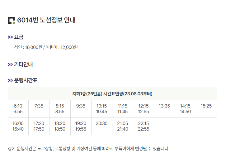 6014번 공항버스 배차간격 : 하루 28편 운행