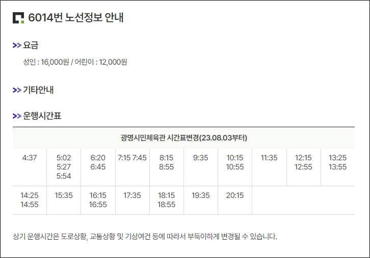 광명 하안동 6014번 공항버스 시간표, 요금, 예약, 예매