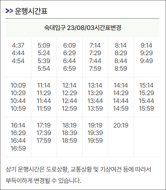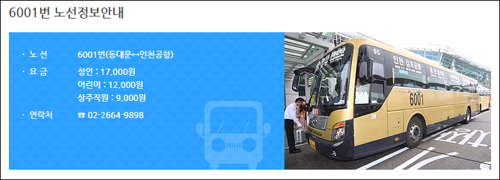 숙대입구역에서 6001번 공항버스 시간표, 요금, 예매