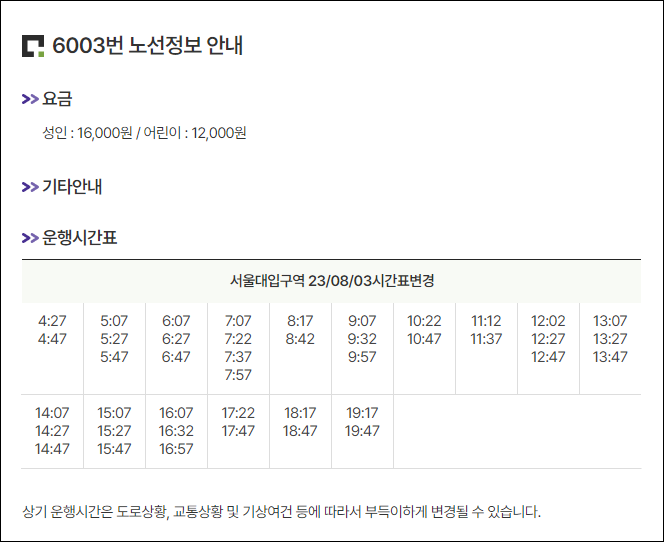6003번 공항버스 요금은 성인 16,000원, 어린이 12,000원이지만 다양한 할인 혜택이 있으니 위 그림을 참고하시길 바랍니다.