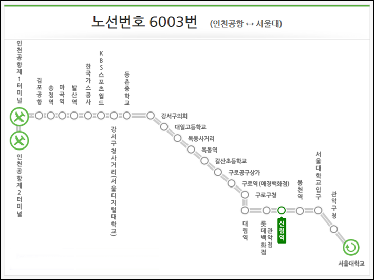 신림역 6003번 공항버스 노선도