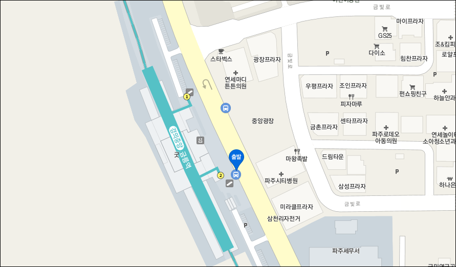 2번 출구 앞 정류장(파주시티병원 건너편)